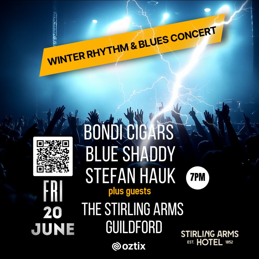 Gigs Stay informed of new gigs, Sign up to our newsletter « All Events This event has passed. Winter Rhythm & Blues Concert – Stirling Arms Hotel – Guildford, WA June 20 With BLUE SHADDY & STEFAN HAUK Get Tickets Here Add to calendar Google Calendar iCalendar Outlook 365 Outlook Live Details Date: June 20 Venue The Stirling Arms 117 James Street (cnr Meadow St) Guildford, WA 6055 Australia + Google Map Phone 08 6142 4352 View Venue Website